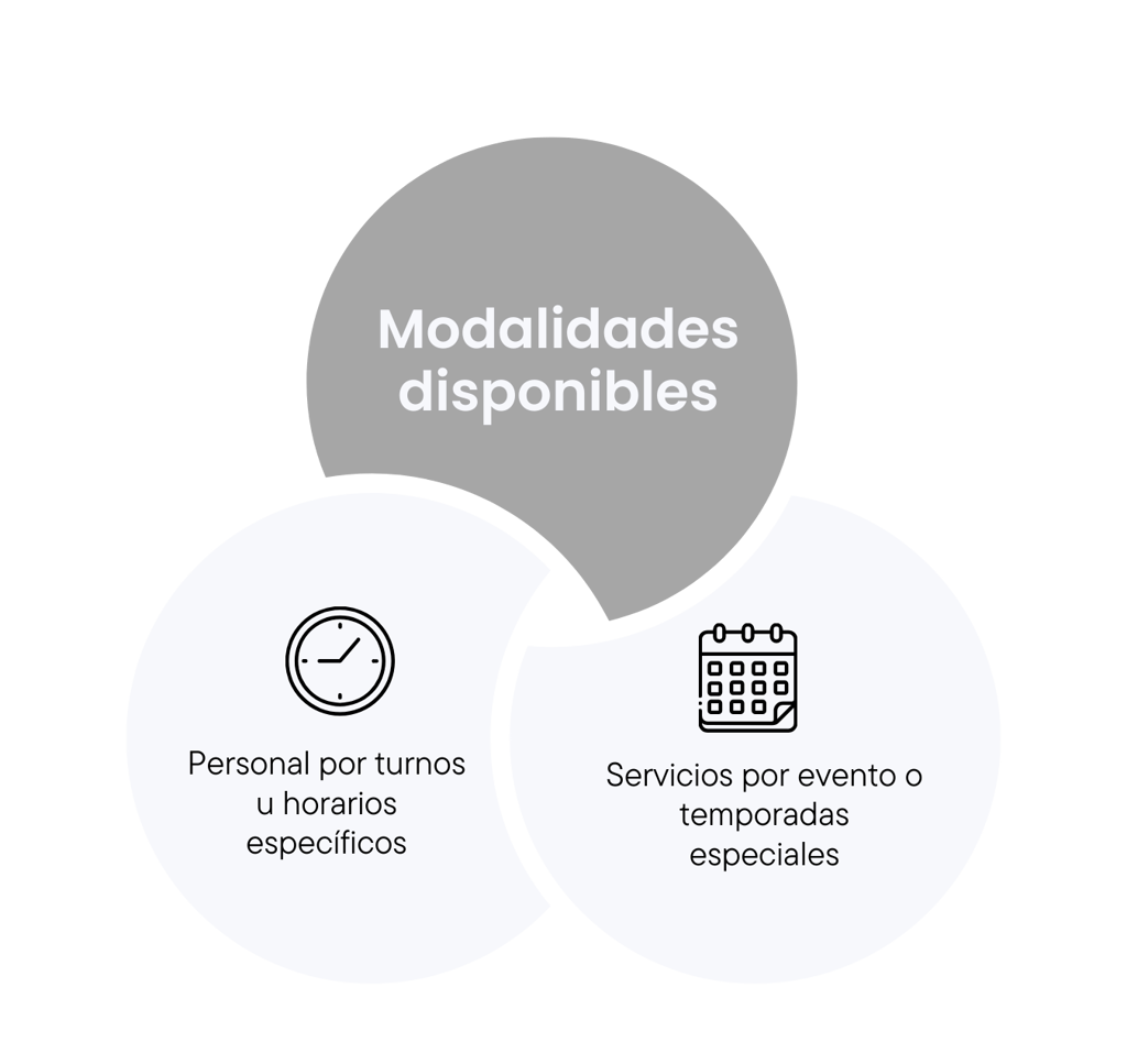 El personal trabaja directamente en las instalaciones del cliente, siguiendo sus lineamientos, menús y horarios.
